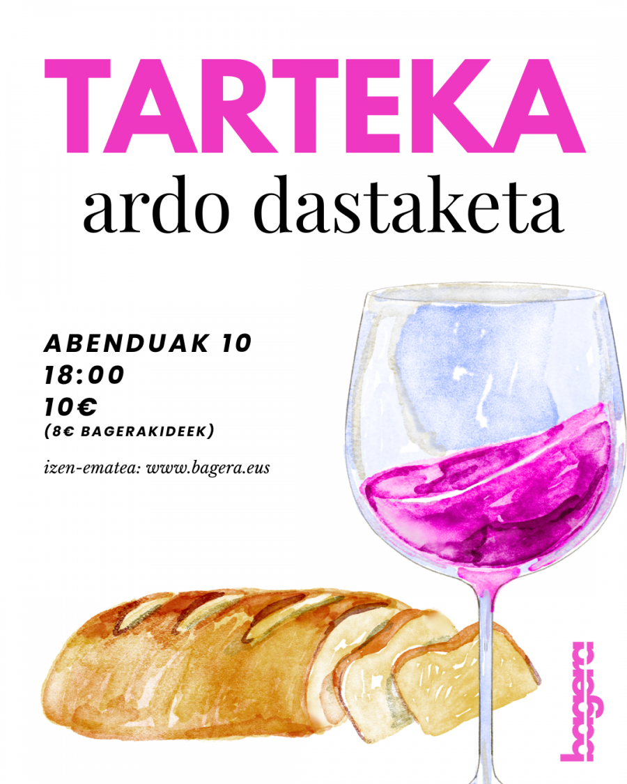 2025a urte oparoa izan da Tarteka egitasmoarentzat. Gazte euskaldunon sarea ehuntzeko asmoz, denetarik egin dugu elkarrekin: mendira joan, olatuak surfeatu, zeramika landu, sukaldatu eta kantuan aritu gara. Baina urtea behar bezala agurtzeko, azken hitzordu berezi bat falta zitzaigun. Gaztea bazara eta giro euskaldunean ondo pasatu nahi baduzu, zatoz urteko azken topaketara: Ardo dastaketa....